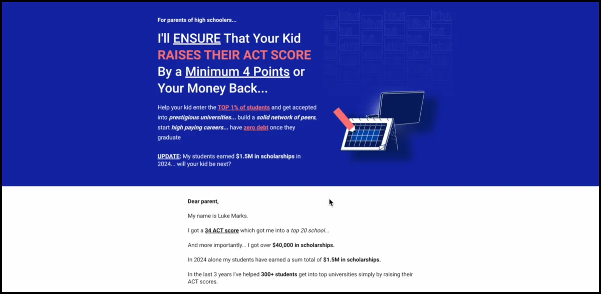Luke DeTutor, a tutoring business focused on college admissions test prep, created optimized ad campaigns to target high school students and their decision-making parents. By refining processes, they achieved maximum results with minimal overspending.